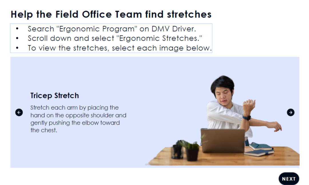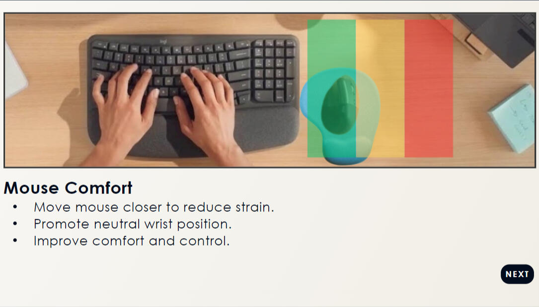 Created a scalable training resource deployed across remote and in-office contexts. Designated ergonomic contacts reported increased confidence in identifying and addressing workstation issues. Provided practical strategies employees could apply immediately without supervisor intervention.