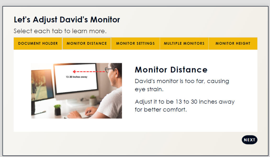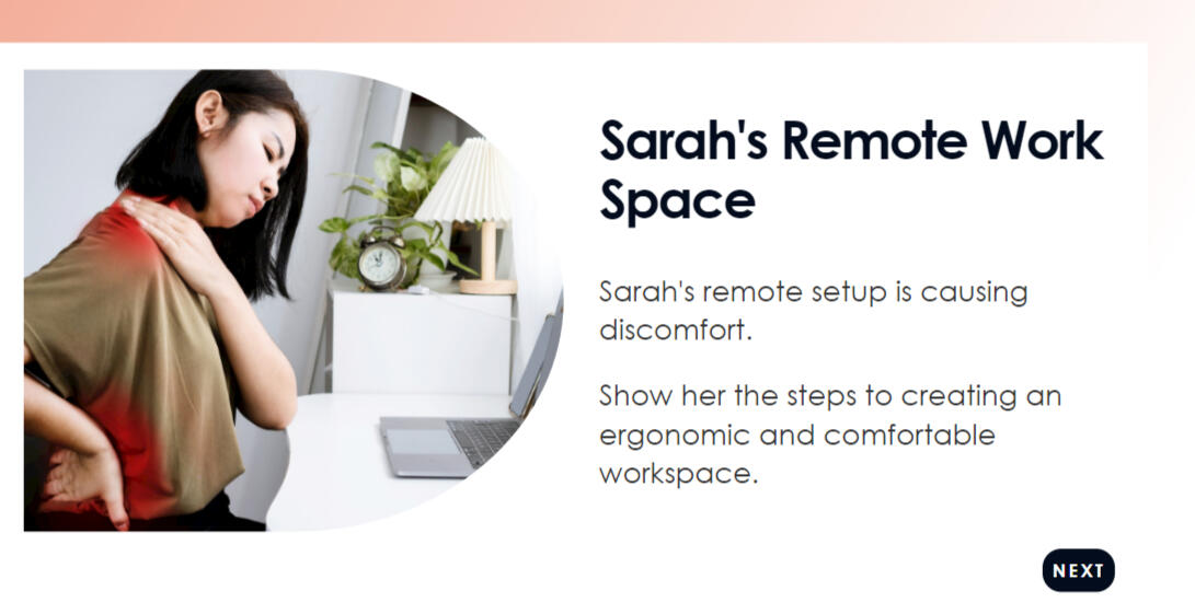 A scenario-based course that helps ergonomics practitioners support employees in both remote and in‑office setups.